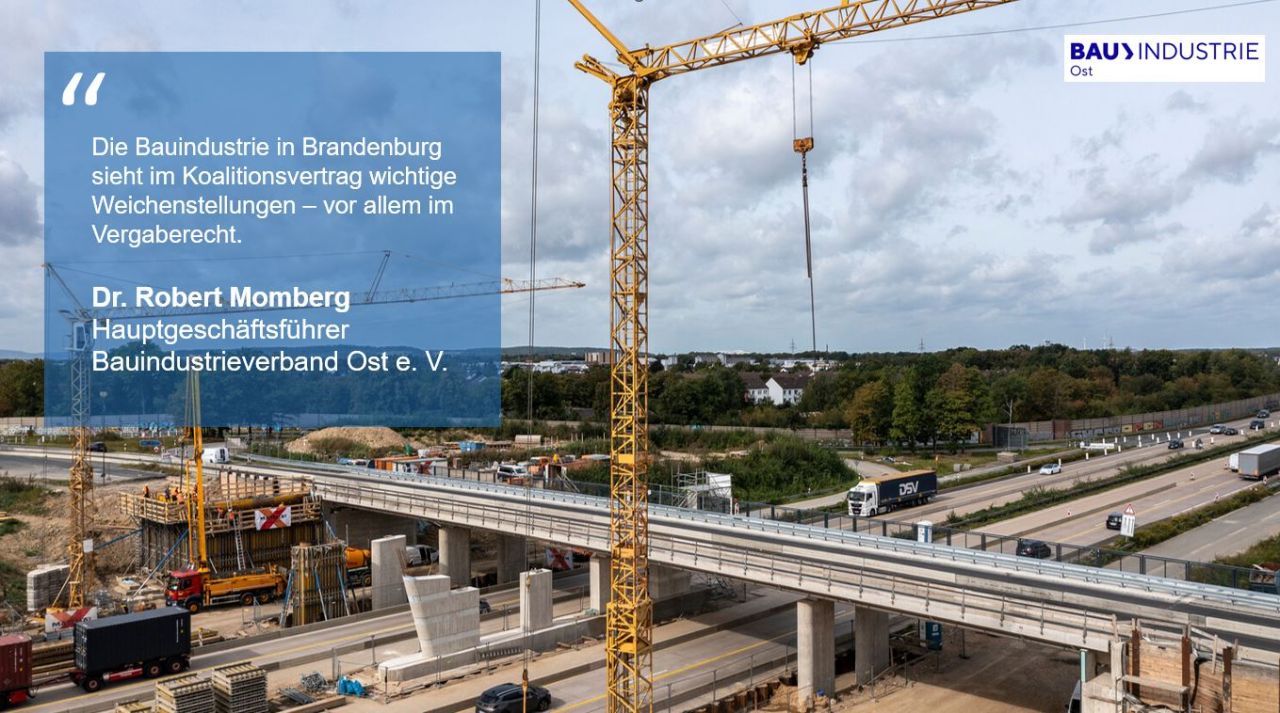 Der Bauindustrieverband Ost äußerst sich anlässlich der heutigen Vorstellung des Koalitionsvertrages des neuen rot-schwarzen Bündnisses in Brandenburg: